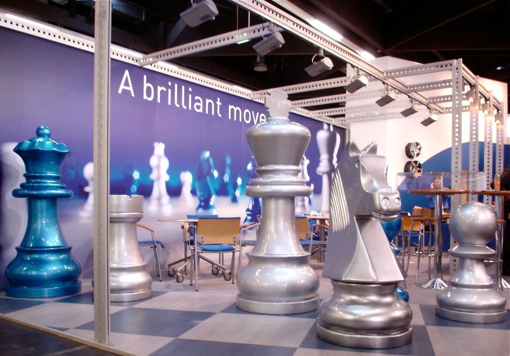 Idee: Imposante bis zu 2 Meter hohe Schachfiguren spiegelten im wahrsten Sinne des Wortes die Klasse der "High Performance Metallics" wieder.