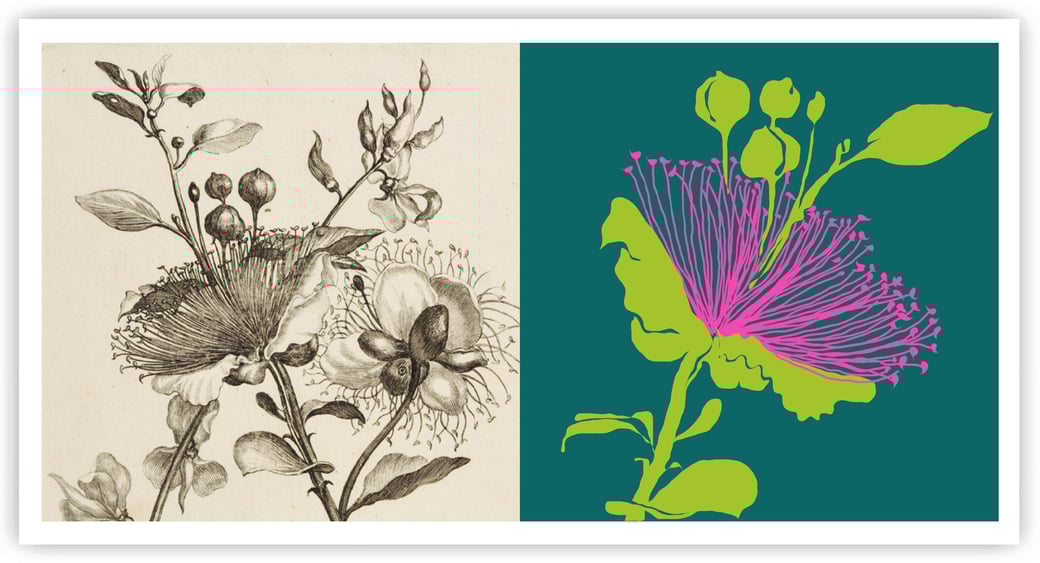 Maria Sibylla Merian: Große Kapernblüte, Detail aus Tafel 10 im dritten Teil des Blumenbuchs, Nürnberg, 1680 (Stadtbibliothek Nürnberg,